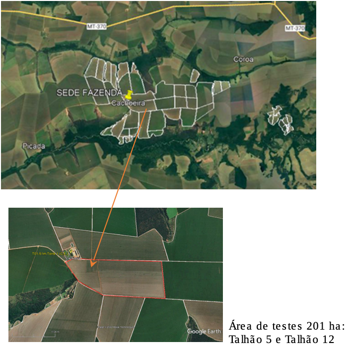 - Características: Propriedade de 4300 ha com uso da talhões para cultivo e gado, com área de testes em 201 ha (talhões 5 e 12)